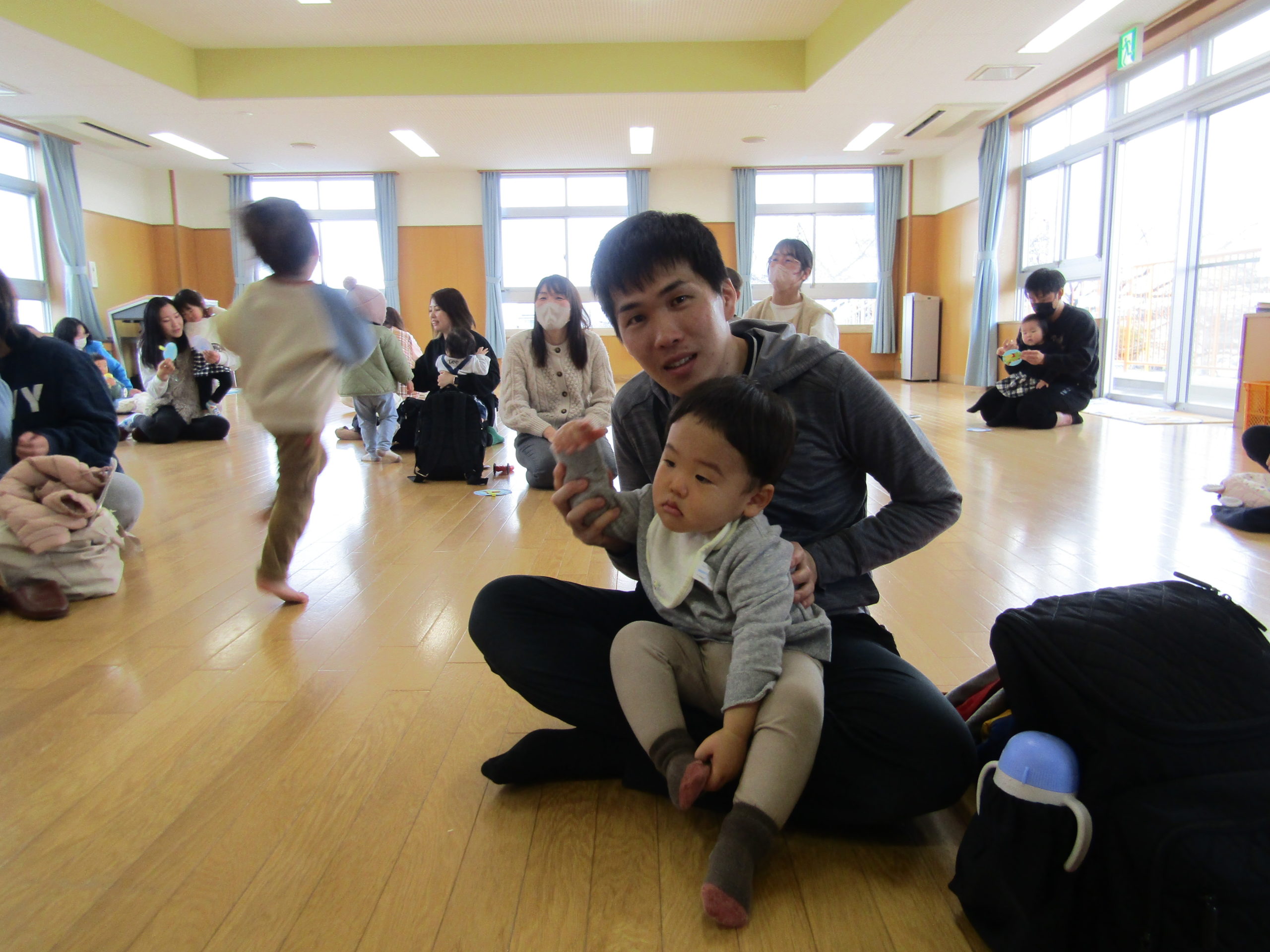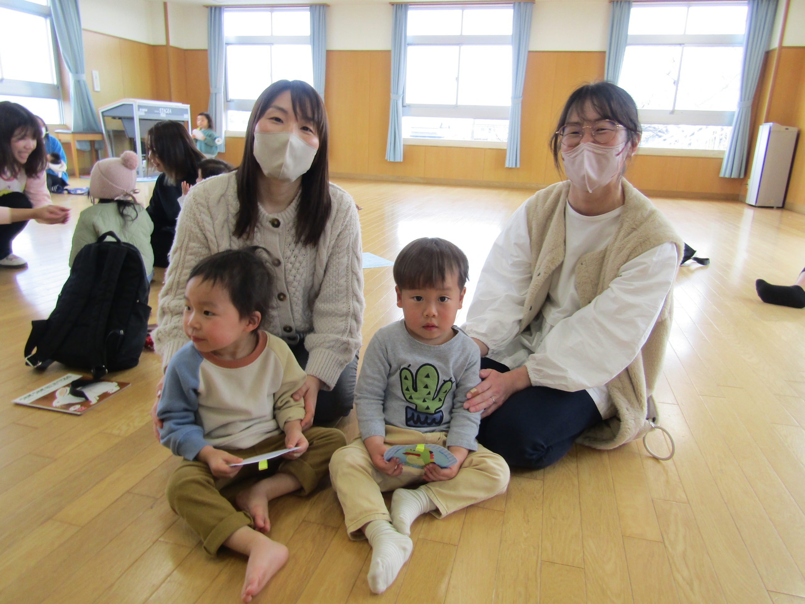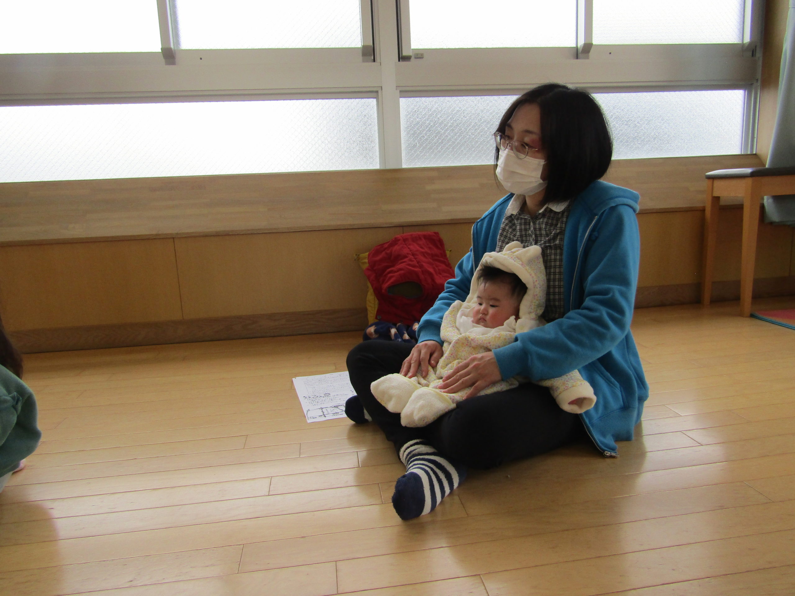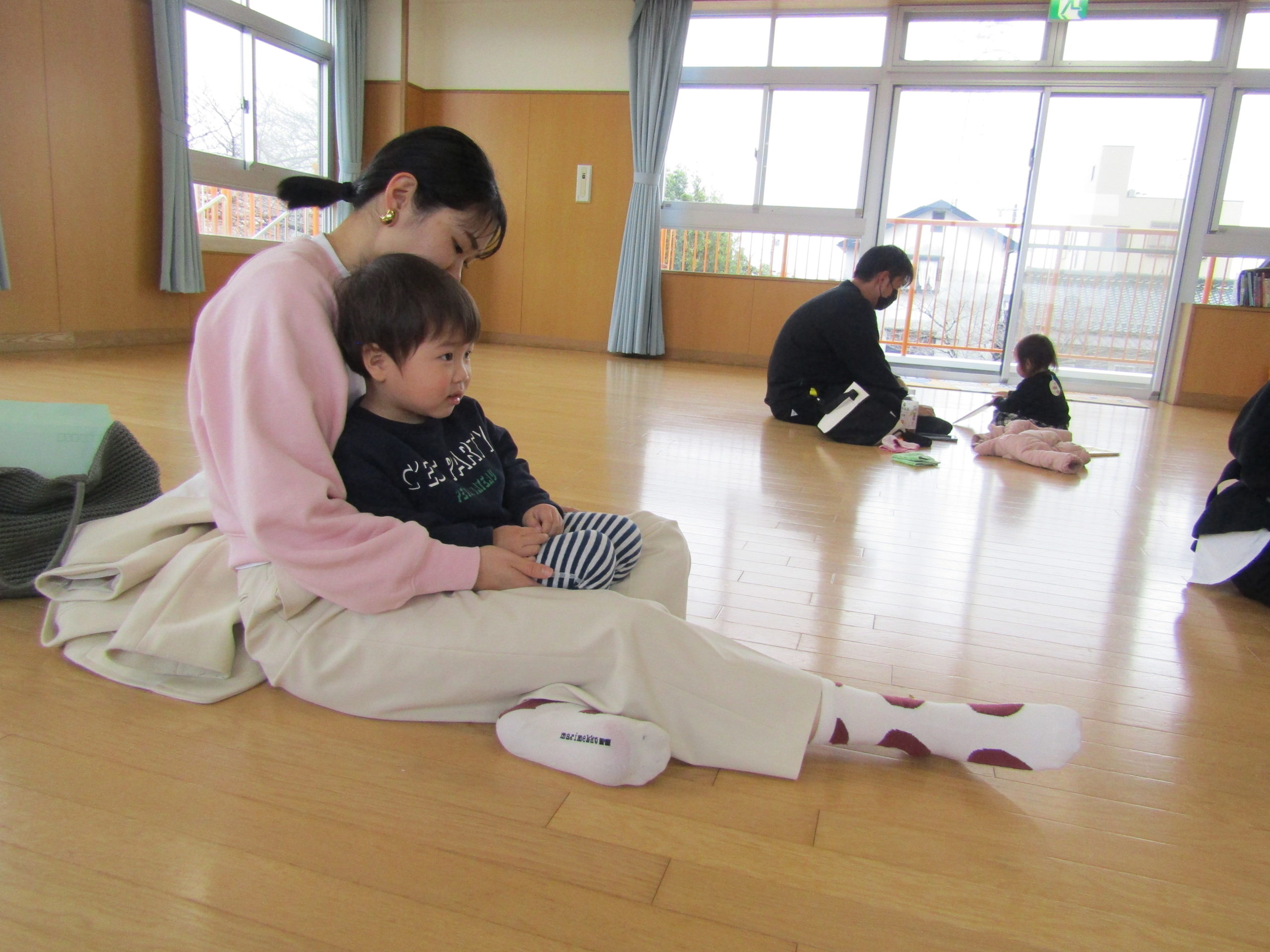 お父さんお母さんが微笑ましく見守って下さり温かい気持ちになりました。お家の方にカードと手形をくっつけてもらい大事そうに持つ姿もとても可愛らしかったです。