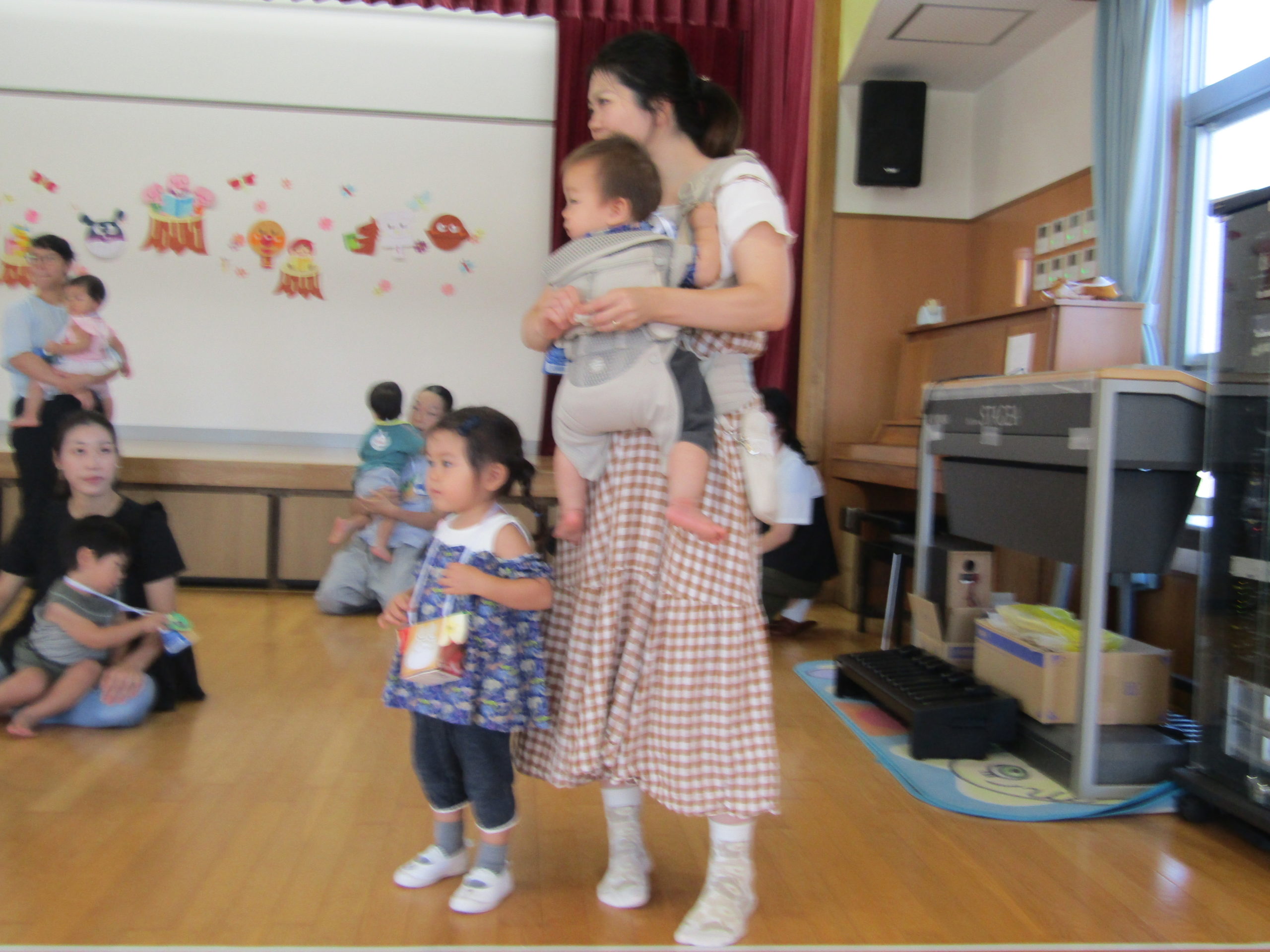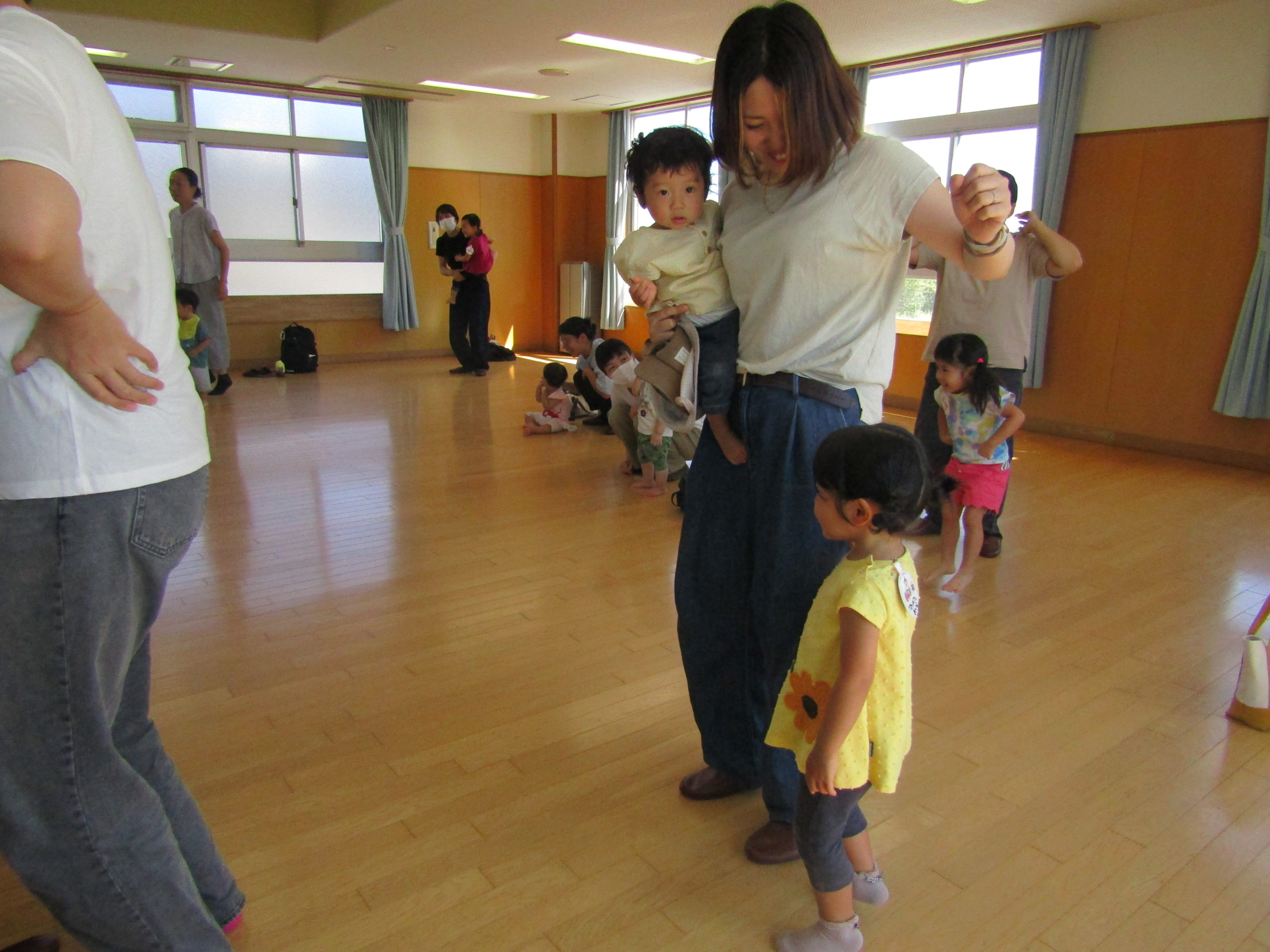 お母さんと一緒に踊ったり体を揺らしたりしてくれました。お母さんたちもお友達も嬉しそうでした。