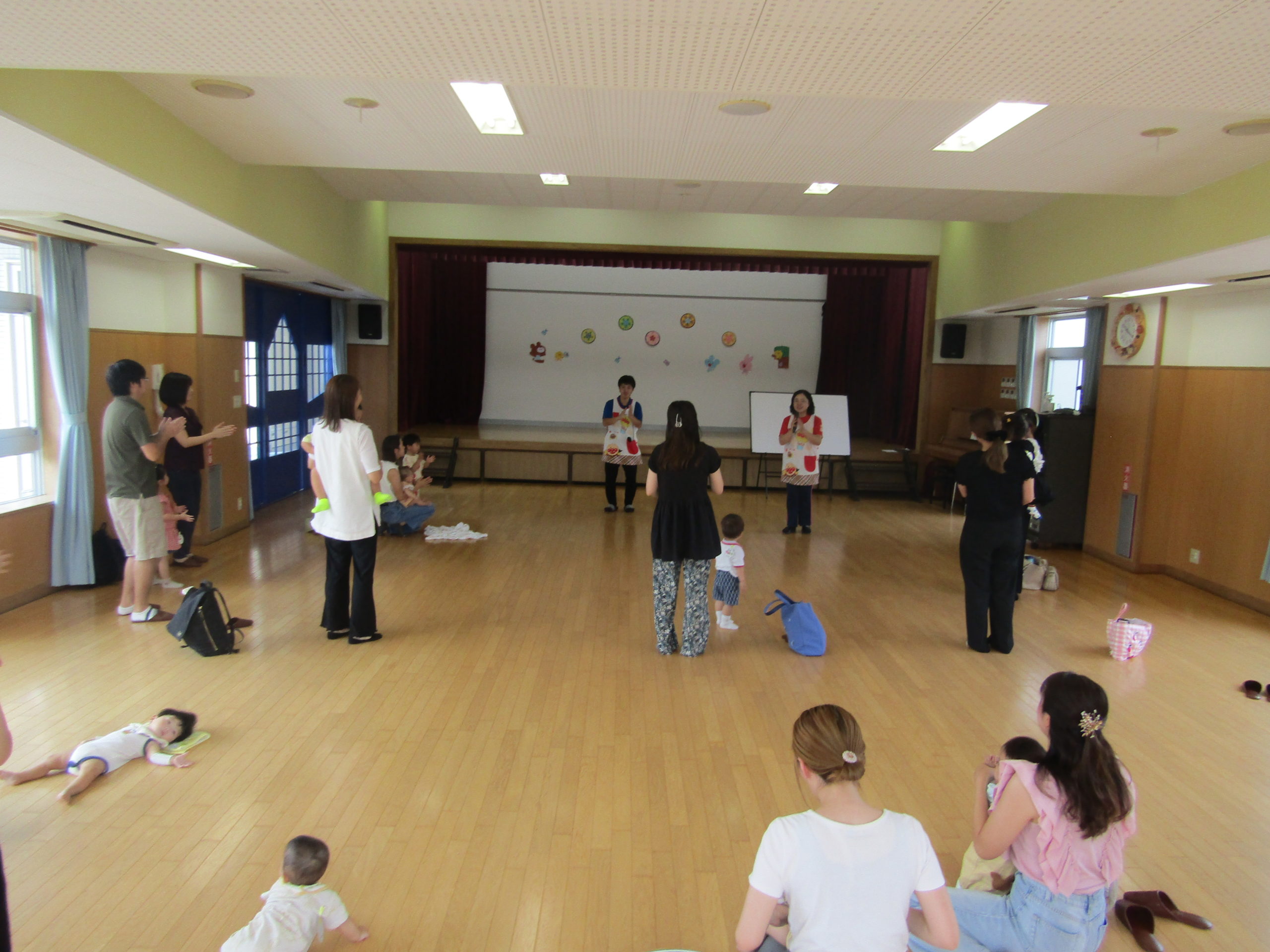 大きな声でお返事をしてくれたり、お母さんと一緒に手を挙げてくれたりと