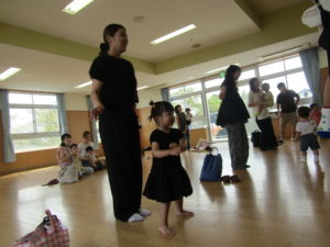 元気よくリズムに乗っている子や、お家の人と一緒に身体を動かしてしている子など、