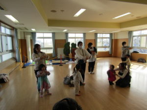 その後、パンダ、うさぎ、コアラの真似をして音楽に合わせて身体を動かしました。