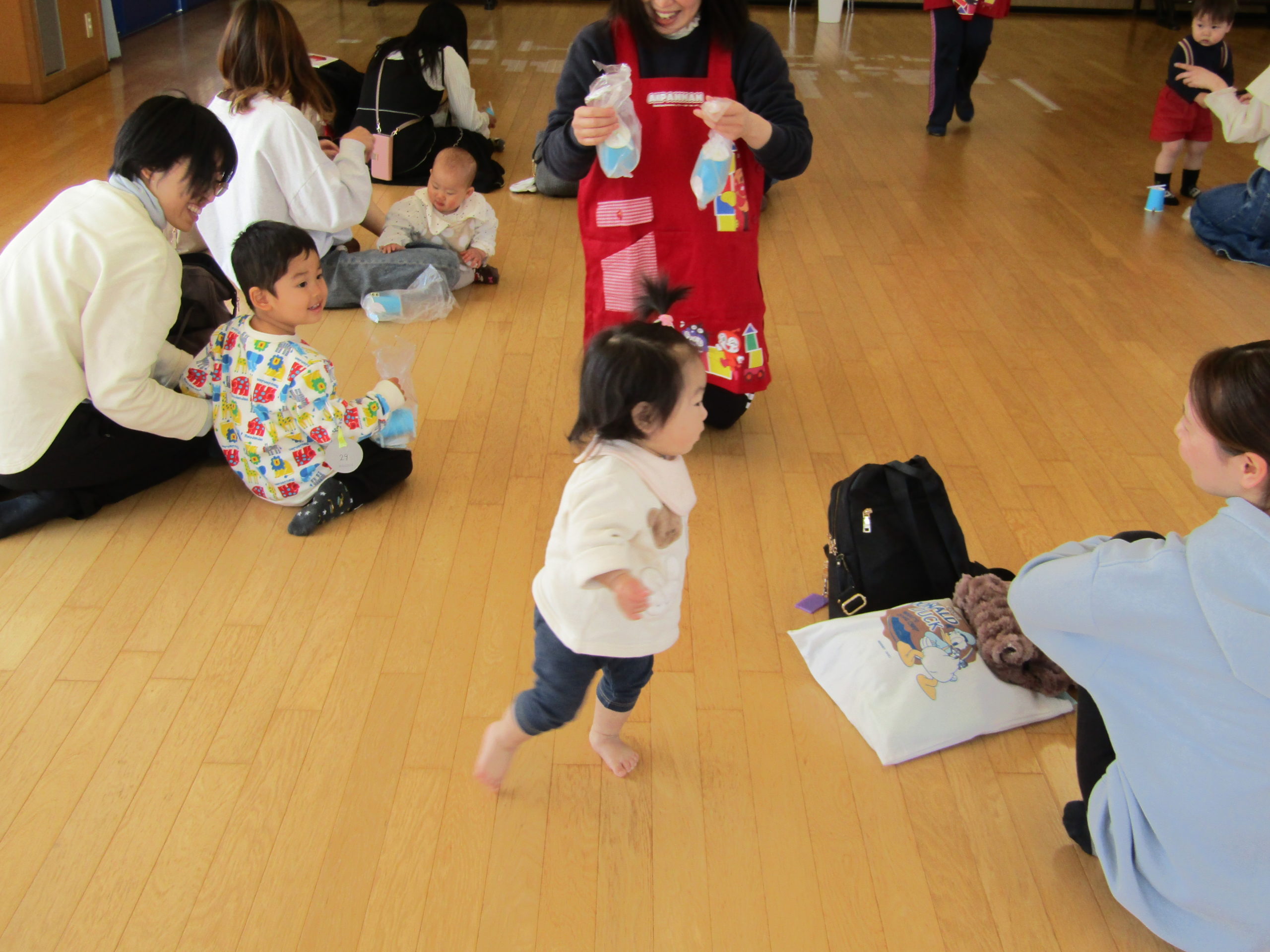 はじめに来てくれたお友だちの名前を一人ひとり呼ぶと、