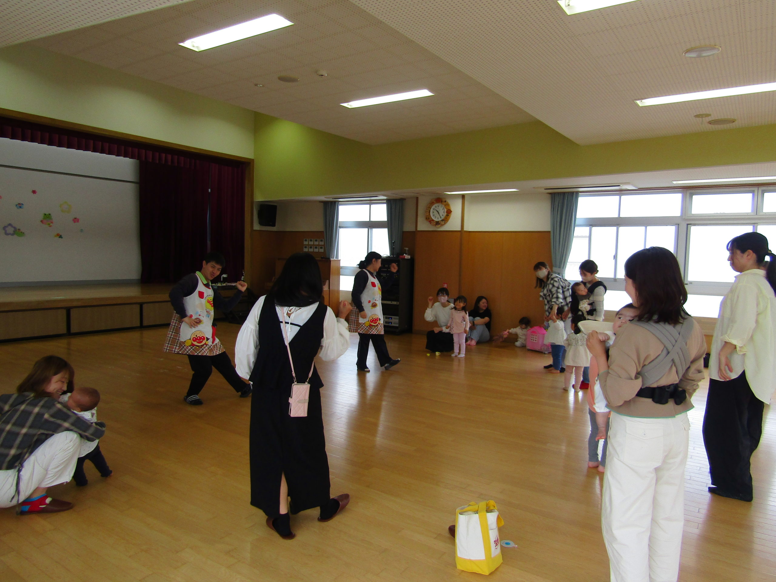 元気よくお返事をしてくれたり、お家の人と一緒に笑顔で手を挙げてくれる子がいたりと、