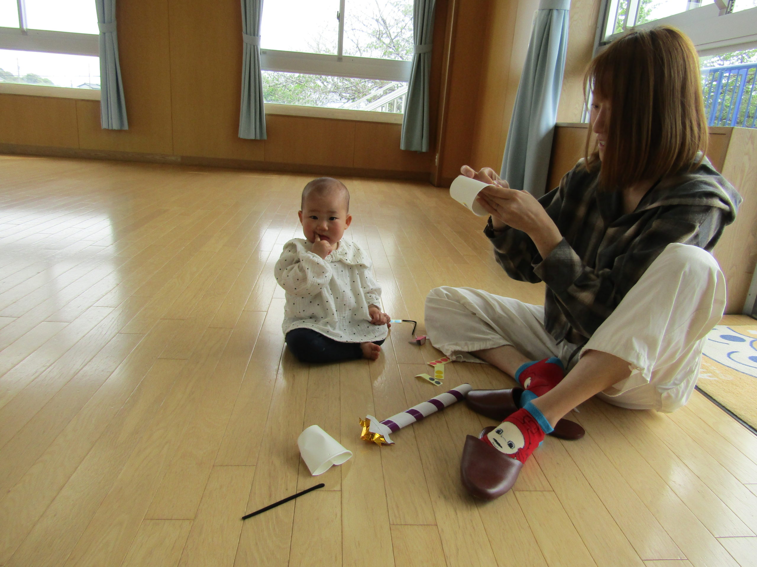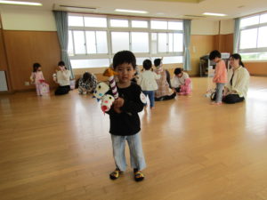身体を動かすのを楽しみました。最後にはお家の人と一緒にぎゅーをして満足そうな様子でした。